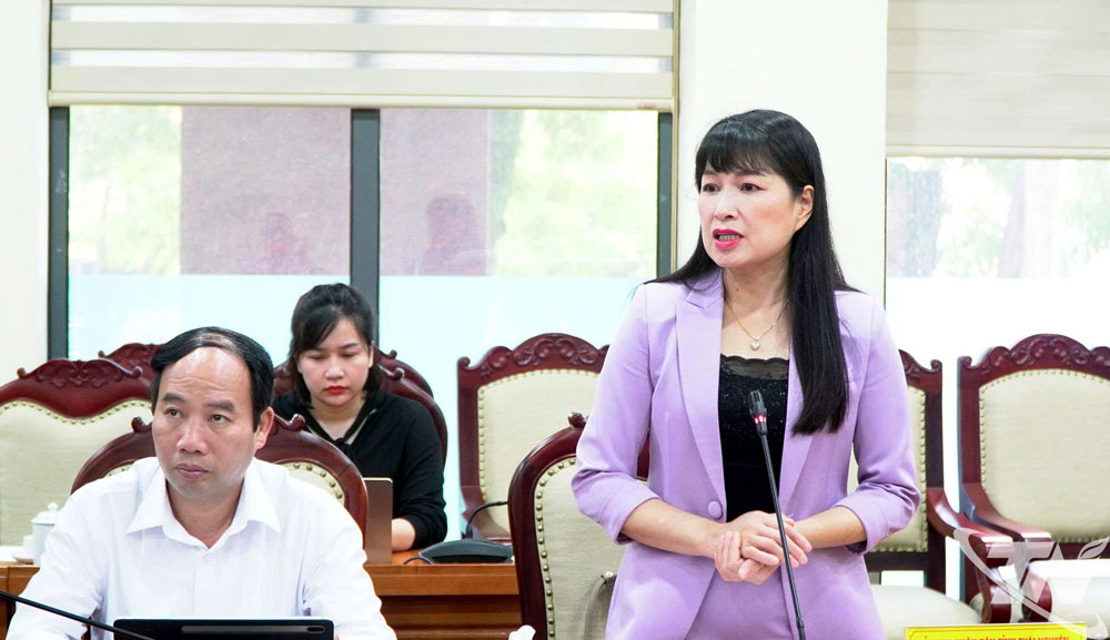 | Đại diện lãnh đạo các đơn vị phát biểu tại cuộc họp. |