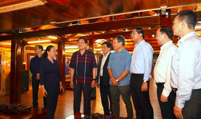 Đồng chí Phan Đình Trạc và Đoàn công tác cùng các đồng chí lãnh đạo tỉnh Thái Nguyên tham quan khu vực chế biến chè