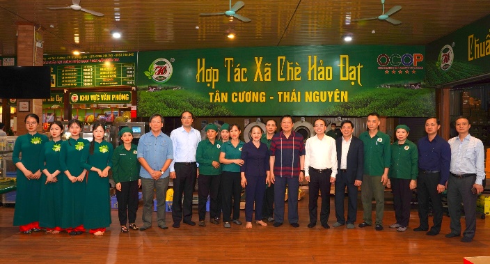 Cũng trong khuôn khổ chuyến công tác, Đoàn đã đến thăm Hợp tác xã chè Hảo Đạt (xã Tân Cương). Tại đây, đồng chí Trưởng đoàn đánh giá cao vai trò của kinh tế tư nhân và kinh tế tập thể trong phát triển nông nghiệp hàng hóa, nhất là việc nâng cao giá trị sản phẩm chè - một thế mạnh của địa phương. Đồng thời đề nghị tỉnh tiếp tục quan tâm, hỗ trợ các hợp tác xã, doanh nghiệp đẩy mạnh ứng dụng khoa học công nghệ, nâng cao chất lượng, sức cạnh tranh, góp phần khẳng định thương hiệu sản phẩm trên thị trường trong nước và quốc tế.