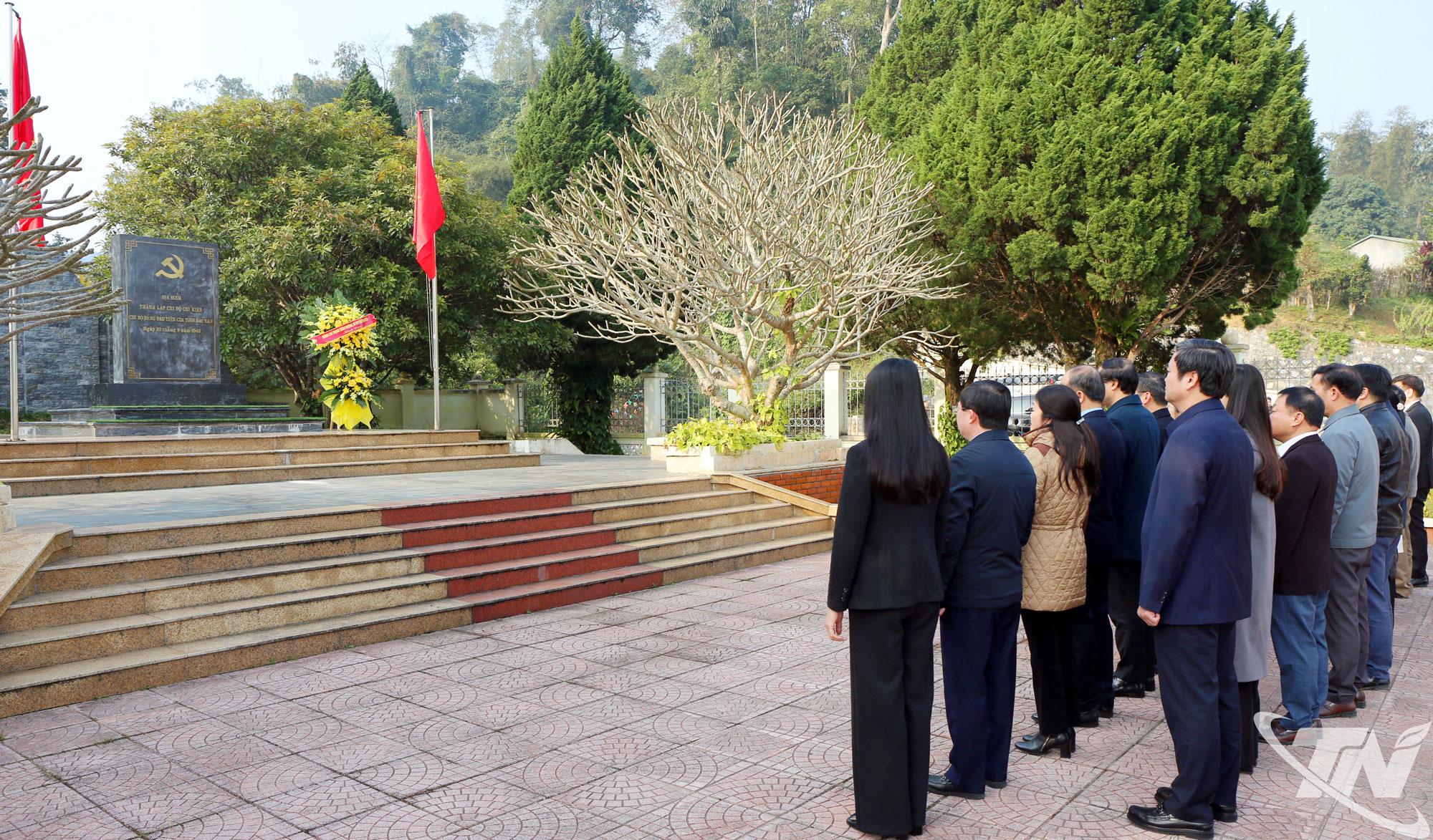 | Đồng chí Bí thư Tỉnh ủy và Đoàn công tác dâng hoa tại Khu Di tích Coỏng Tát (xã Bằng Vân). |