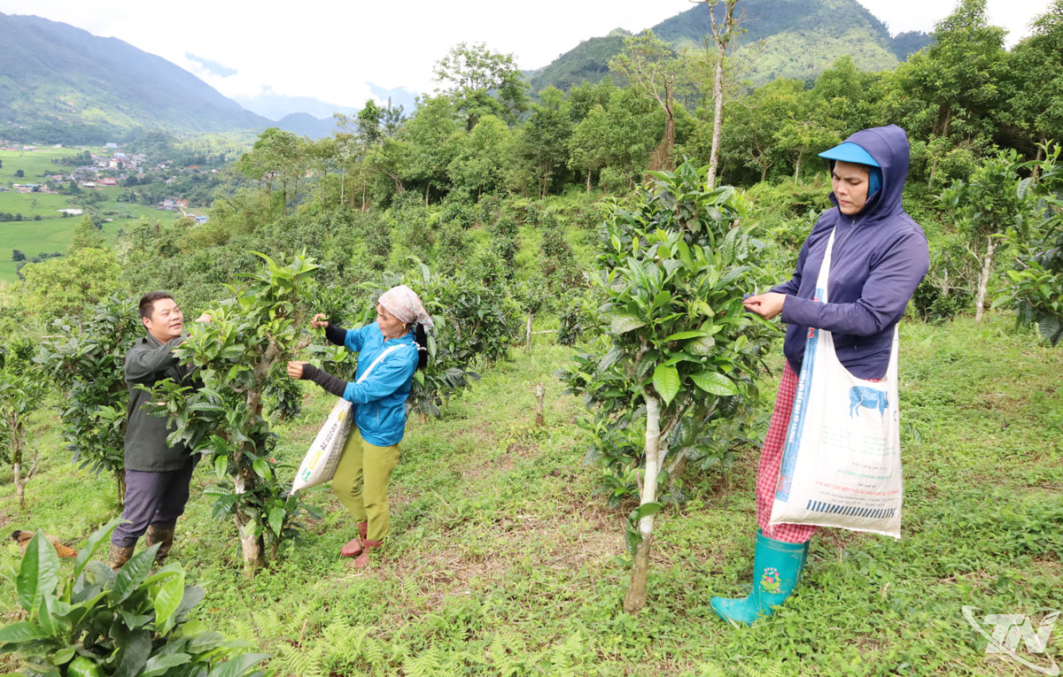 | Người dân xã Đồng Phúc thu hái chè Shan tuyết. |