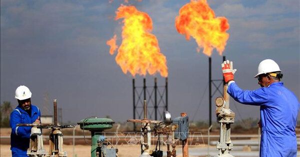 | Công nhân làm việc tại một cơ sở khai thác dầu ở Basra, Iraq. Ảnh: TTXVN |
