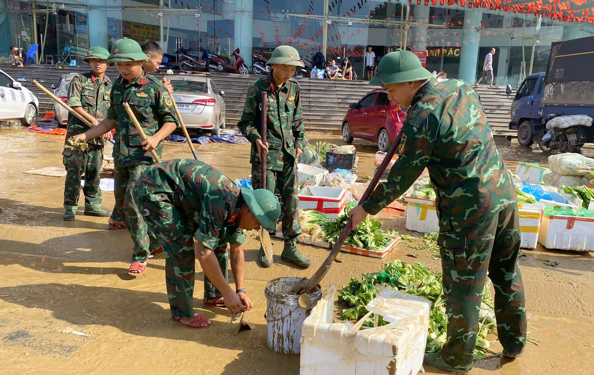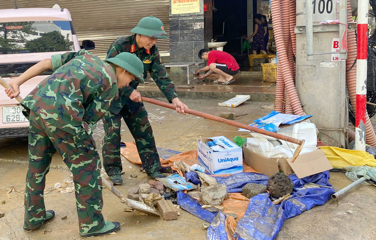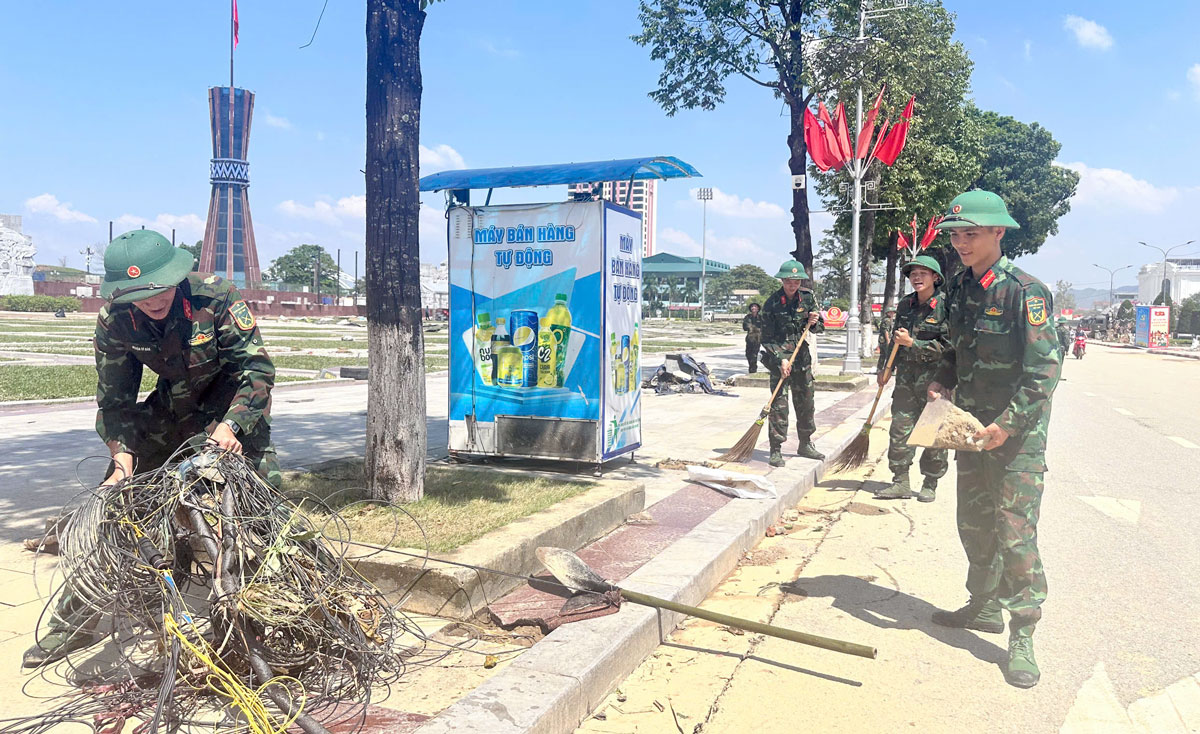 Sáng 9-10, hơn 500 cán bộ, chiến sĩ của Trung đoàn 209, Sư đoàn 312 (đóng quân tại Sông Công, tỉnh Thái Nguyên) và hơn 100 cán bộ, chiến sĩ của Lữ đoàn 210 (Quân khu 1) đã tham gia dọn dẹp vệ sinh môi trường tại khu vực trung tâm hành chính tỉnh sau khi nước lũ rút.