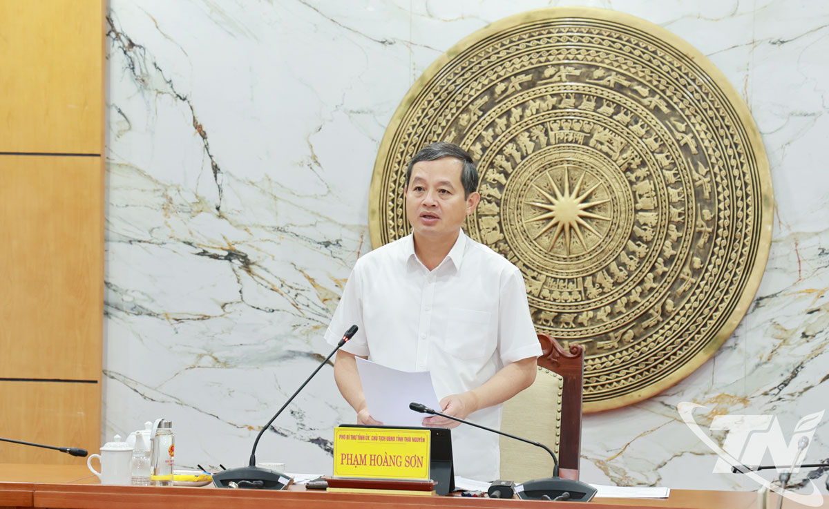 | Đồng chí Chủ tịch UBND tỉnh Phạm Hoàng Sơn chủ trì cuộc họp. |