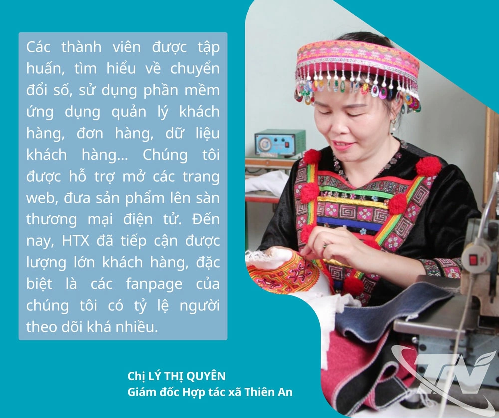 “Nhờ áp dụng chuyển đổi số, sản lượng bán hàng của HTX tăng gấp 5 lần, thu nhập của thành viên tăng 3 lần”, chị Lý Thị Quyên, Giám đốc HTX Thiên An, cho biết.