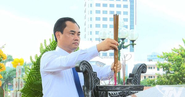 | Đồng chí Bí thư Tỉnh ủy Trịnh Việt Hùng dâng hương tại Đài tưởng niệm các Anh hùng liệt sĩ tỉnh. |