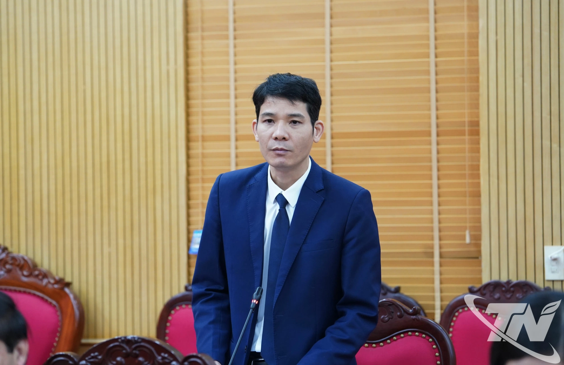 | Đồng chí Nguyễn Thành Minh, Ủy viên Ban Thường vụ, Chánh Văn phòng Tỉnh ủy, phát biểu tại Hội nghị. |