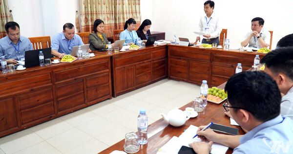 | Đoàn kiểm tra làm việc với Chi nhánh Văn phòng Đăng ký đất đai Khu vực V. |