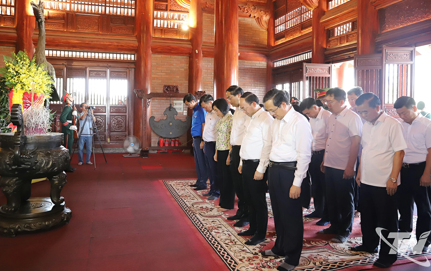 | Đồng chí Nguyễn Thị Thanh, Ủy viên Ban Chấp hành Trung ương Đảng, Phó Chủ tịch Quốc hội và đồng chí Trịnh Xuân Trường, Bí thư Tỉnh ủy thỉnh chuông tại Khu di tích lịch sử Quốc gia 915. |