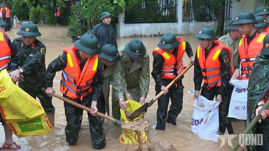 Quân khu 1 đã huy động hơn 7.600 cán bộ, chiến sĩ, dân quân và 128 phương tiện (92 ô tô, 36 xuồng, ca nô các loại) tham gia khắc phục hậu quả mưa lũ.