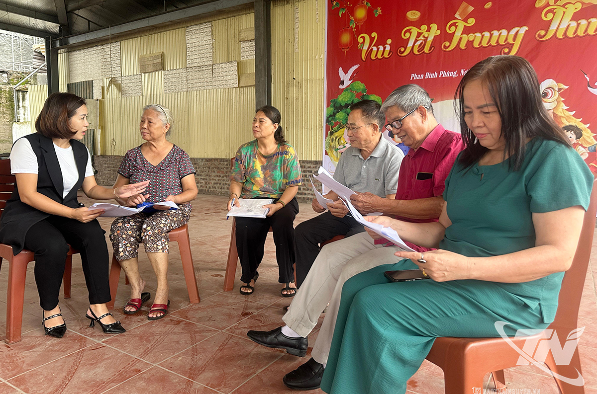 | Cán bộ địa chính phường Phan Đình Phùng hướng dẫn người dân cung cấp dữ liệu về đất đai. |