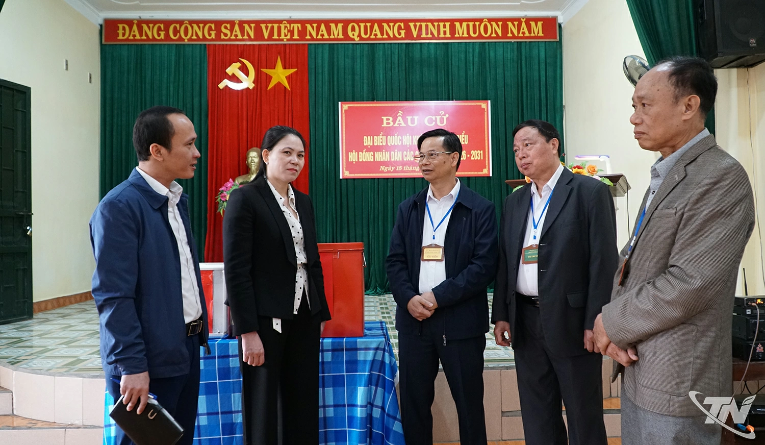 | Đoàn công tác kiểm tra khu vực bỏ phiếu. |