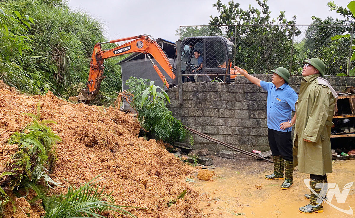 | Lãnh đạo UBND xã Đại Từ chỉ đạo công tác khắc phục xử lý sạt lở nhà dân tại xóm Gò Lá. |