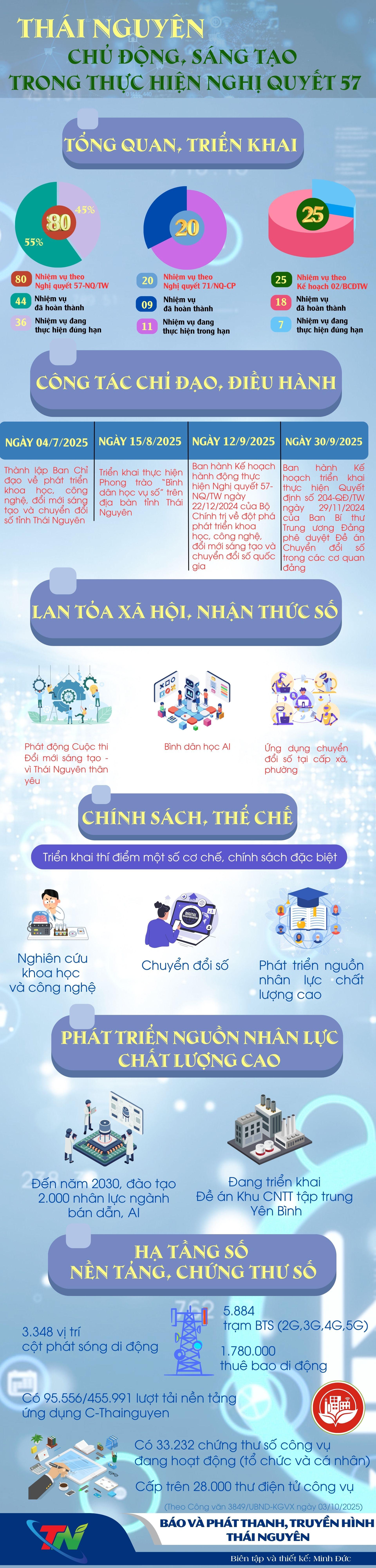 Thứ năm, 16/10/2025 | 13:54 A- A A+ | Thái Nguyên: Nhiều kết quả trong thực hiện Nghị quyết 57 TNĐT / baothainguyen.vn Từ khóa: Thái Nguyên chủ động sáng tạo nghị quyết 57 Bình luận Email* Ý kiến của bạn* Nhập lại Gửi Các tin khác Đoàn đại biểu Quốc hội tỉnh Thái Nguyên tiếp xúc cử tri sau Kỳ họp thứ mười, Quốc hội khóa XV Khắc phục ngập úng tại phường Phan Đình Phùng: Hoàn thành nạo vét trước Tết Nguyên đán Doanh thu từ du lịch ước đạt gần 7.447 tỷ đồng Thái Nguyên khẳng định dấu ấn đối ngoại Giữ ổn định thị trường dịp Tết Hái lộc rừng đầu mùa
