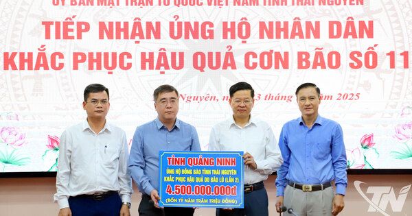 Dịp này, Đoàn công tác của tỉnh Quảng Ninh đã trao 4,5 tỷ đồng hỗ trợ tỉnh Thái Nguyên để khắc phục hậu quả của mưa lũ, sớm ổn định đời sống người dân.