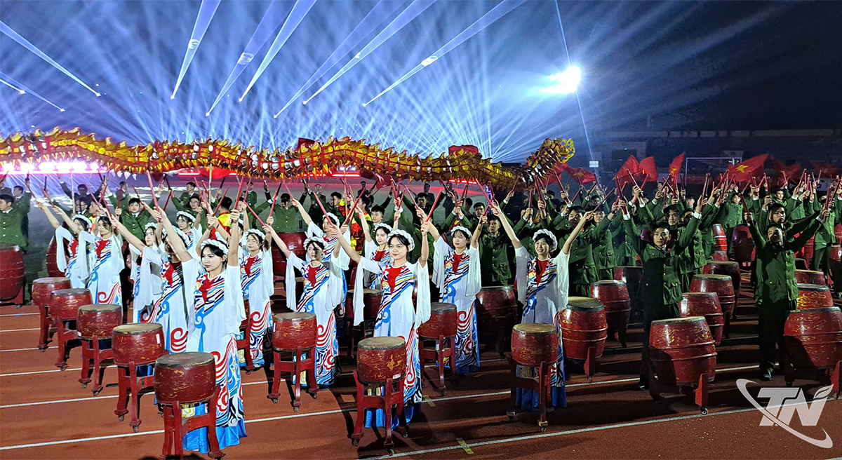 | Màn trình diễn ánh sáng và sự tham gia của gần 1.000 cán bộ, chiến sĩ, diễn viên, sinh viên. |