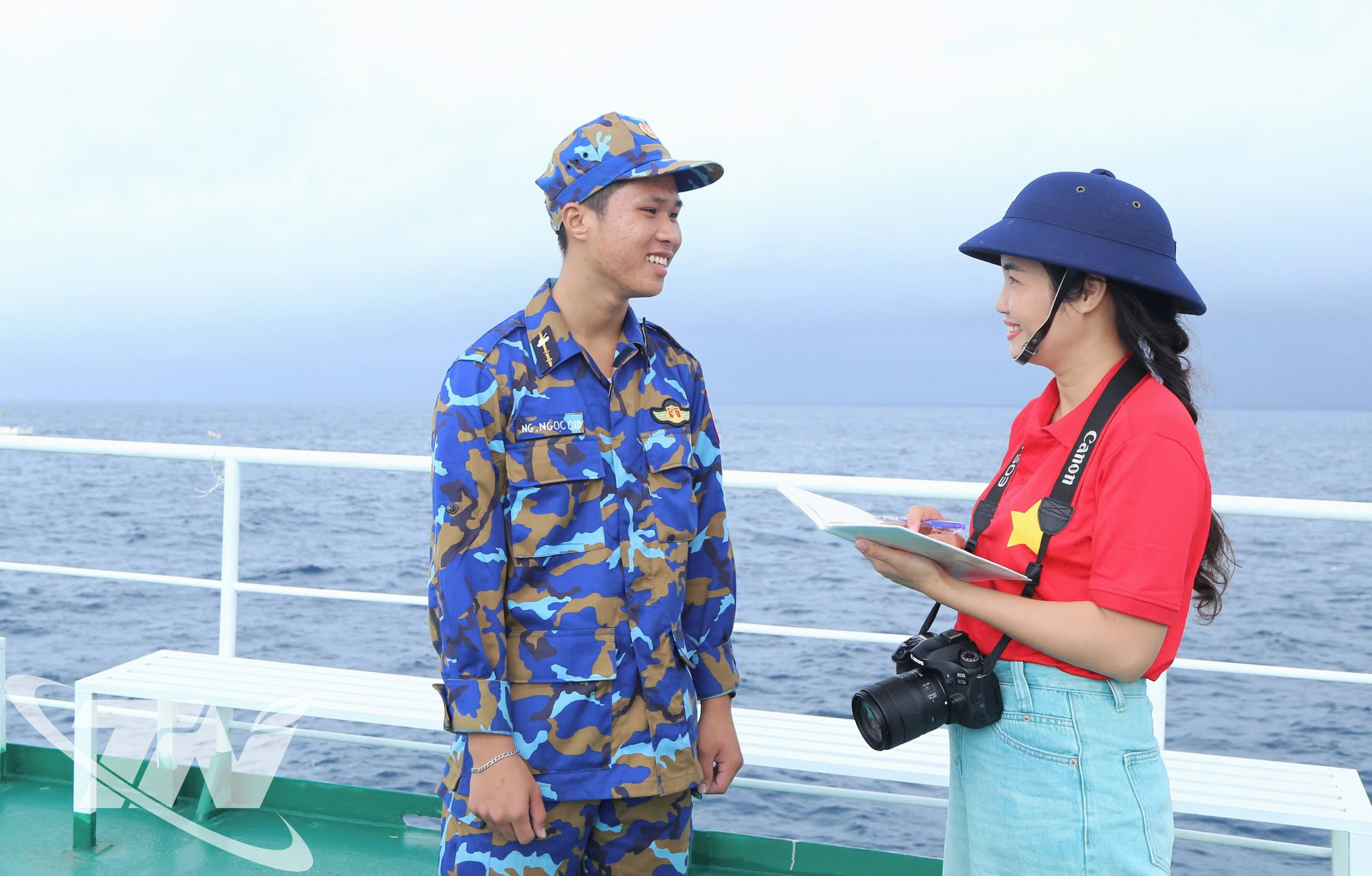 | Phóng viên Báo và Phát thanh, Truyền hình Thái Nguyên tác nghiệp tại Trường Sa. |