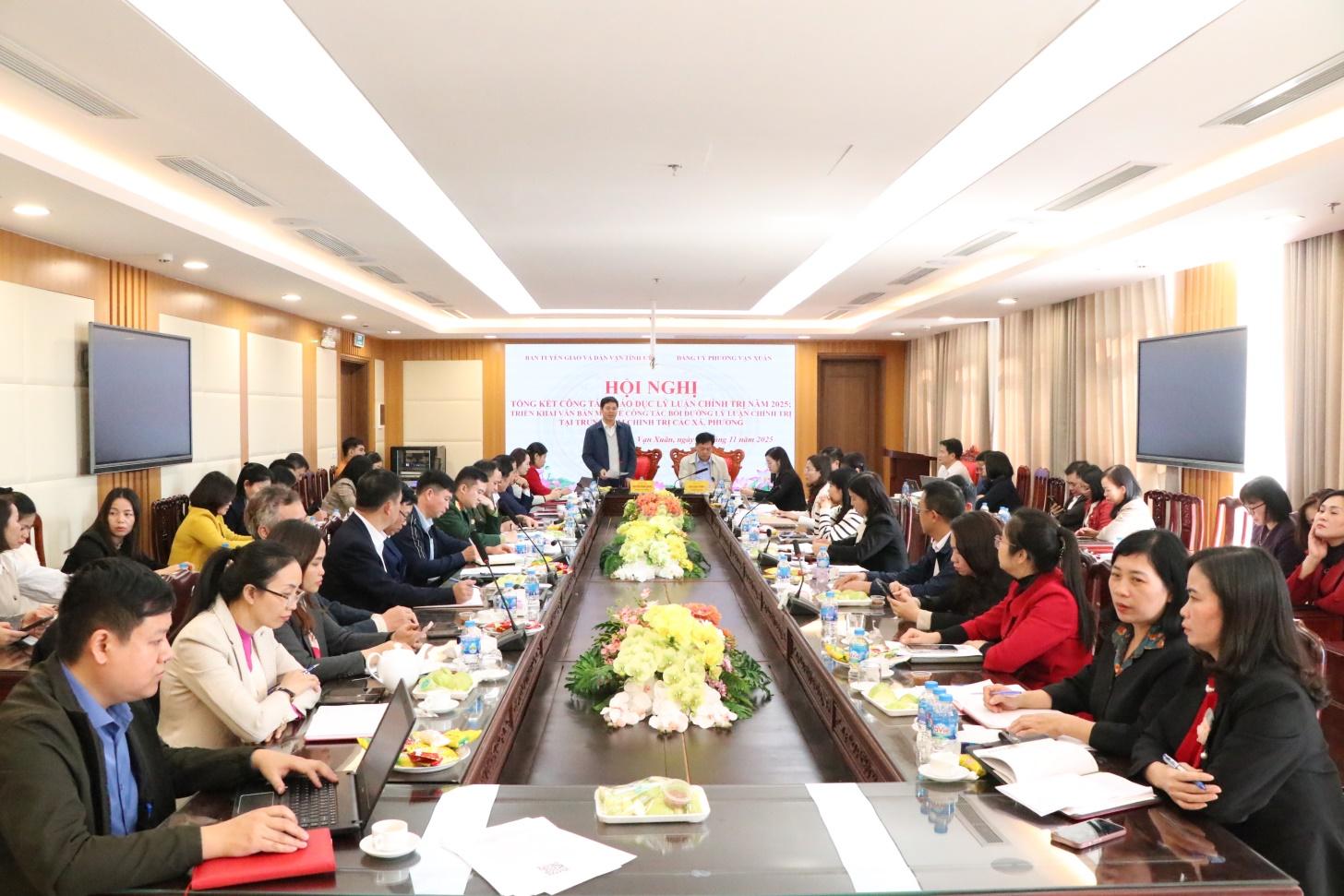 Sáng 26/11, tại trụ sở phường Vạn Xuân, Ban Tuyên giáo và Ban Dân vận Tỉnh ủy phối hợp với Đảng ủy phường Vạn Xuân tổ chức Hội nghị đánh giá công tác giáo dục lý luận chính trị năm 2025 và triển khai các văn bản mới về công tác bồi dưỡng lý luận chính trị tại trung tâm chính trị các xã, phường.