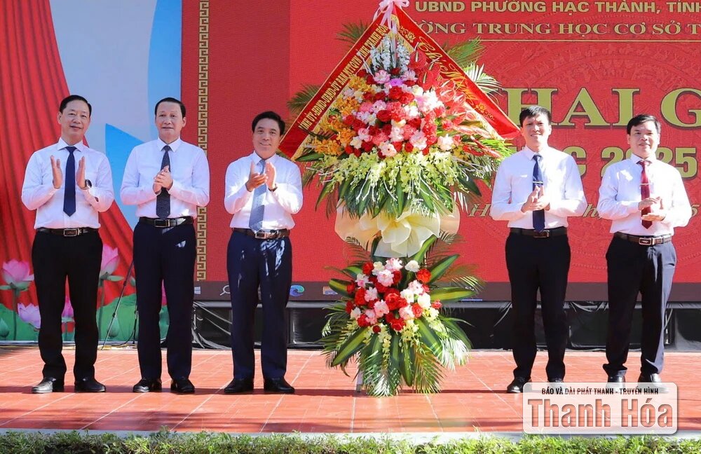 Dự lễ khai giảng tại điểm cầu Trường THCS Trần Mai Ninh, tỉnh Thanh Hóa, có các đồng chí: Nguyễn Doãn Anh, Ủy viên Trung ương Đảng, Bí thư Tỉnh ủy; Đỗ Minh Tuấn, Phó Bí thư Tỉnh ủy, Chủ tịch UBND tỉnh; lãnh đạo Sở GD&ĐT, phường Hạc Thành cùng các thầy cô giáo, các bậc phụ huynh và toàn thể các em học sinh Trường THCS Trần Mai Ninh.