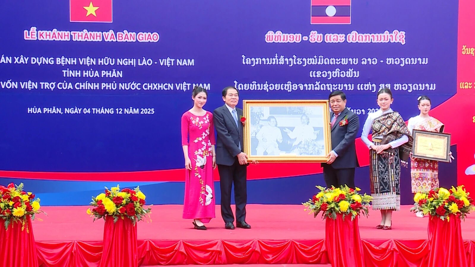Dưới sự chứng kiến của lãnh đạo Chính phủ hai nước, Việt Nam - Lào, Chủ tịch UBND tỉnh Thanh Hóa và Tỉnh trưởng tỉnh Hủa Phăn đã ký Biên bản bàn giao - tiếp nhận công trình Bệnh viện Hữu nghị Lào - Việt Nam.
