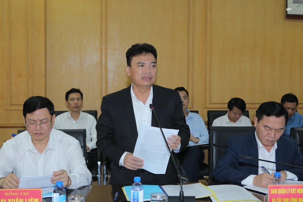 Báo cáo tại buổi làm việc, đồng chí Trịnh Huy Triều, Tỉnh ủy viên, Trưởng Ban Quản lý KKT Nghi Sơn và các KCN cho biết, KKT Nghi Sơn có diện tích quy hoạch 106.000 ha, gồm 55 phân khu chức năng, được xác định là một trong 8 khu kinh tế ven biển trọng điểm của cả nước.