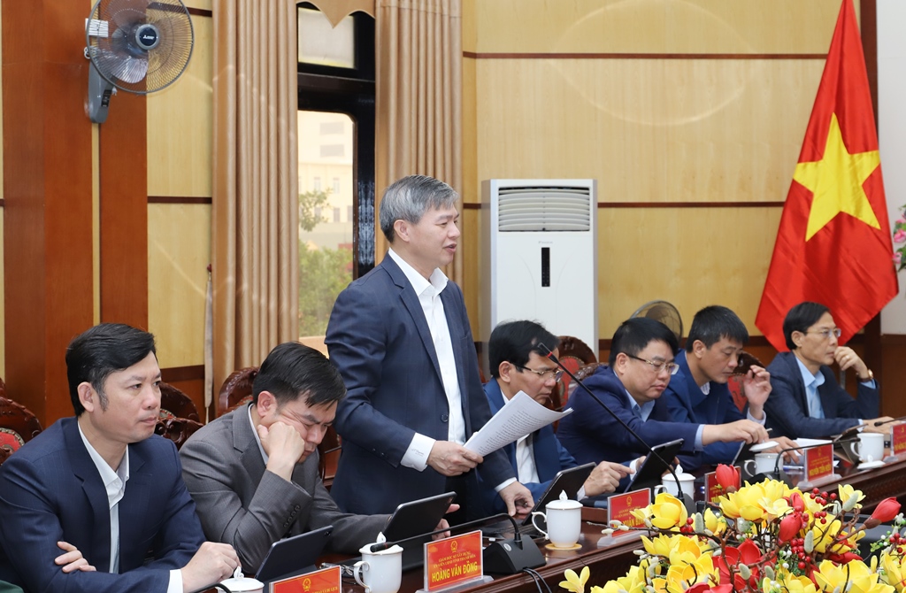 | Phó Chủ tịch UBND tỉnh Cao Văn Cường phát biểu tại phiên họp. |