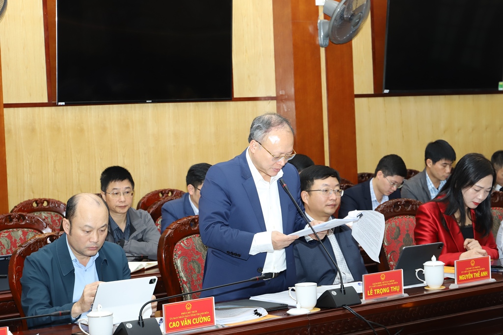 Mở đầu phiên họp, Giám đốc Sở Tài chính trình bày các tờ trình, gồm: Tờ trình của UBND tỉnh về việc đề nghị ban hành Nghị quyết của HĐND tỉnh quy định phân cấp nguồn thu, nhiệm vụ chi và tỷ lệ phần trăm phân chia nguồn thu giữa các cấp ngân sách địa phương tỉnh Thanh Hóa năm 2026; Tờ trình của UBND tỉnh về việc đề nghị ban hành Nghị quyết của HĐND tỉnh sửa đổi, bổ sung và bãi bỏ một số điều của Nghị quyết số 177/2021/NQ-HĐND ngày 10/12/2021 của HĐND tỉnh về nguyên tắc, tiêu chí và định mức phân bổ dự toán chi thường xuyên; Tờ trình của UBND tỉnh về việc đề nghị điều chỉnh, bổ sung dự toán thu, chi ngân sách nhà nước năm 2025 từ nguồn kết dư và chuyển nguồn năm 2024 sang năm 2025 ngân sách cấp huyện; Tờ trình về việc Công bố địa bàn ưu đãi đầu tư tỉnh Thanh Hóa.