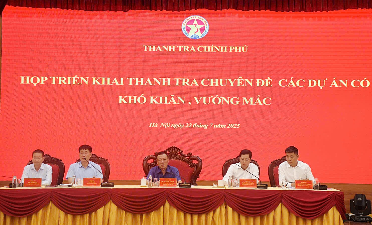 Tại cuộc họp, Tổng Thanh tra Chính phủ Đoàn Hồng Phong cho biết đây là nhiệm vụ được Chính phủ, Thủ tướng Chính phủ giao Thanh tra Chính phủ chủ trì triển khai thực hiện tại Nghị quyết số 205/NQ-CP phiên họp Chính phủ thường kỳ tháng 6/2025 và Hội nghị trực tuyến Chính phủ với địa phương vừa được Chính phủ ban hành. Tổng Thanh tra yêu cầu, các đơn vị thuộc Thanh tra Chính phủ theo chức năng, nhiệm vụ tập trung cao độ hoàn thành các thủ tục cần thiết để triển khai các Đoàn thanh tra bảo đảm tiến độ, chất lượng theo quy định pháp luật. Tổng Thanh tra cho biết,
