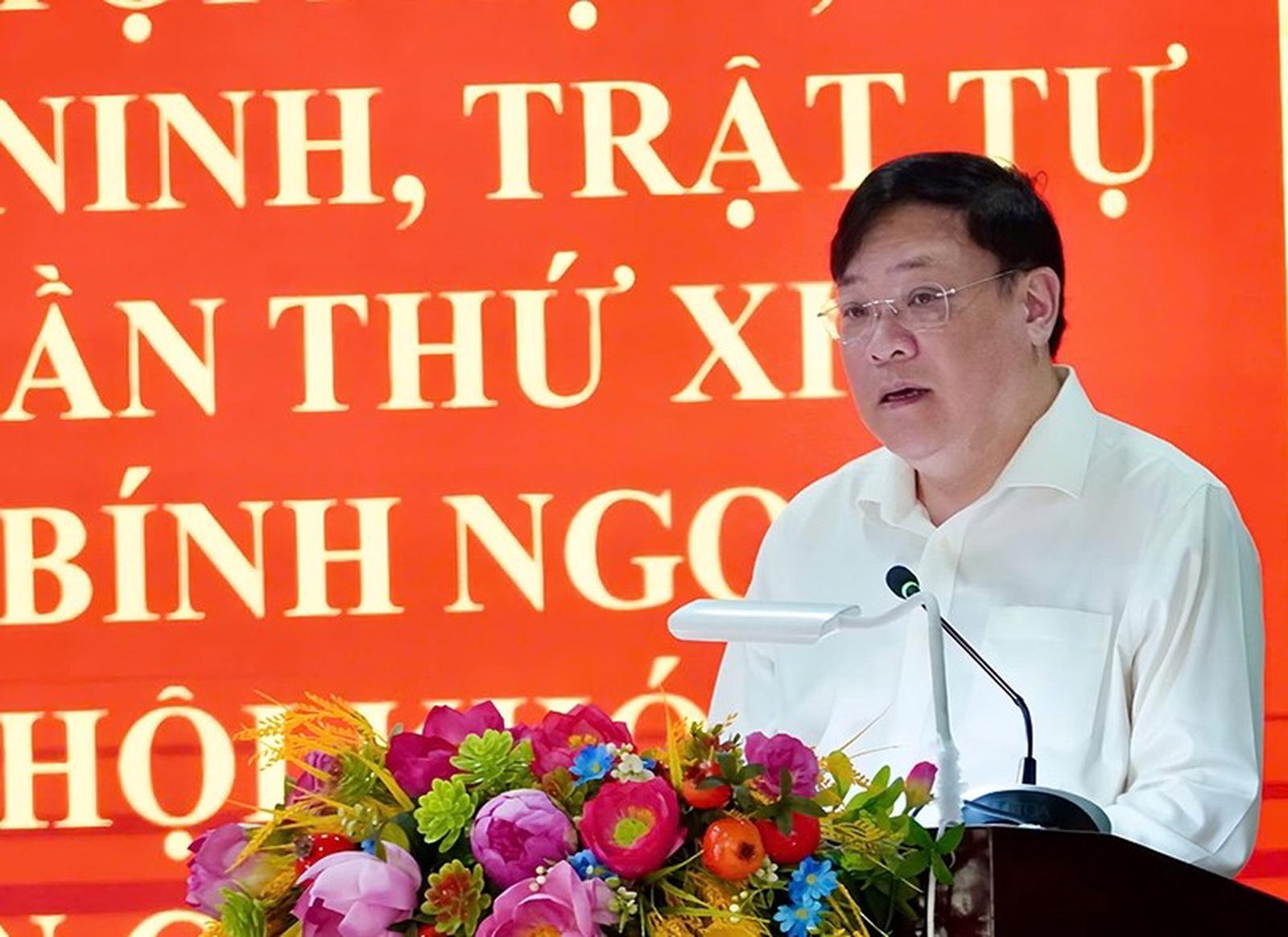 Chủ tịch UBND tỉnh Đồng Tháp Phạm Thành Ngại đề nghị ngành Công an tỉnh Đồng Tháp ập trung rà soát, hoàn thiện các phương án, kế hoạch bảo vệ an ninh quốc gia... Ảnh: VT