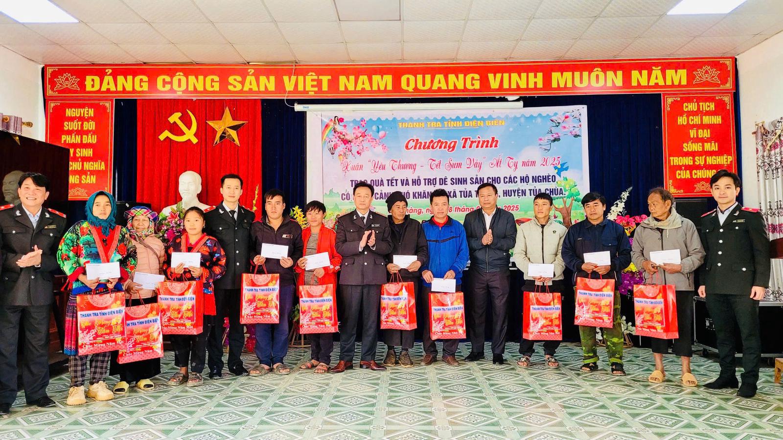 Thanh tra tỉnh Điện Biên tặng quà các hộ gia đình nghèo xã Tủa Thàng dịp Tết Nguyên đán Ất Tỵ 2025. Ảnh: CTV