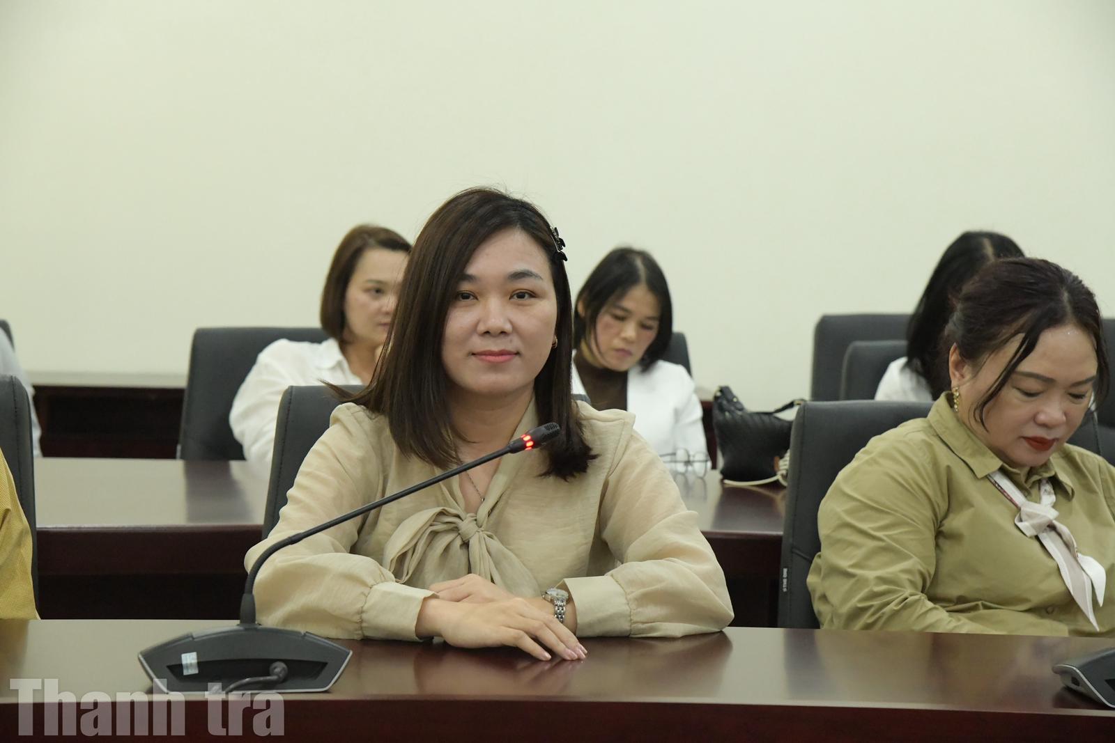 Bà Nguyễn Thị Trà Vân (ảnh giữa) chia sẻ cảm xúc tại buổi sinh hoạt chuyên đề. Ảnh: Huy Trần
