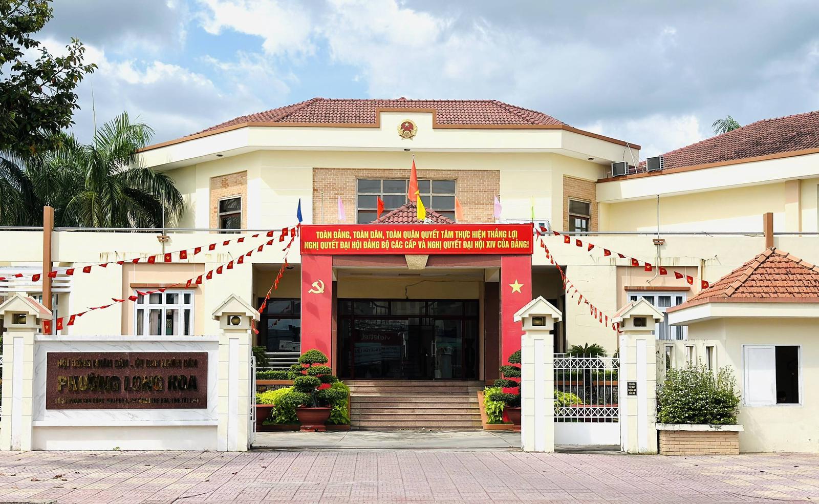 Phường Long Hoa, tỉnh Tây Ninh treo băng rôn tuyên truyền Đại hội đại biểu toàn quốc lần thứ XIV của Đảng. Ảnh: Cổng TTĐT phường Long Hoa