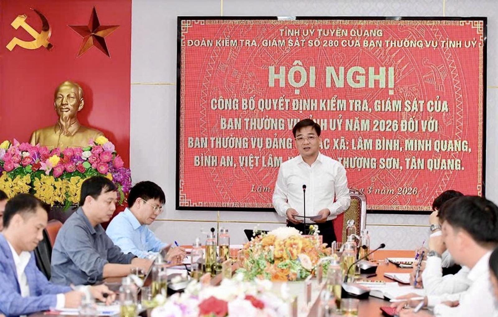 Tuyên Quang: Công bố quyết định kiểm tra, giám sát Ban Thường vụ Đảng ủy các xã