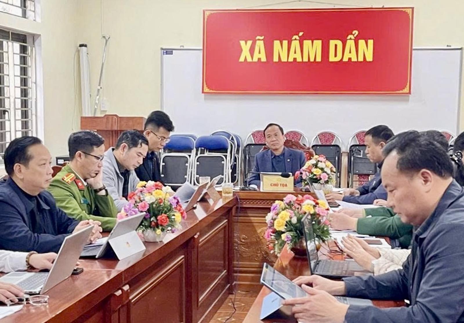 Đại biểu dự hội nghị trực tuyến tại điểm cầu Đảng ủy xã Nấm Dẩn. Ảnh: Quốc Việt