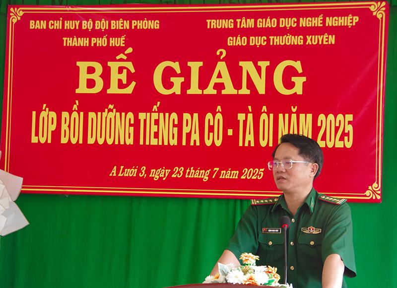 Ngày 23/7, tại xã A Lưới 3, Ban Chỉ huy Bộ đội Biên phòng (BĐBP) thành phố Huế phối hợp Trung tâm Giáo dục nghề nghiệp - Giáo dục thường xuyên huyện A Lưới tổ chức bế giảng lớp bồi dưỡng tiếng dân tộc thiểu số Pa Cô - Tà Ôi năm 2025.