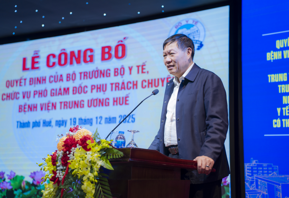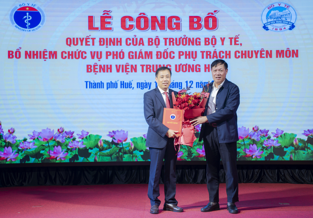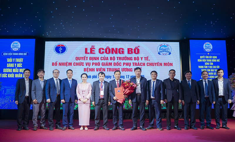 Tại buổi lễ, Thứ trưởng Bộ Y tế Đỗ Xuân Tuyên đã trao quyết định bổ nhiệm TS.BS Hồ Văn Linh - Trưởng Phòng Chỉ đạo tuyến, Trưởng khoa Phẫu thuật Ung bướu (Bệnh viện Trung ương Huế) giữ chức Phó Giám đốc phụ trách chuyên môn Bệnh viện Trung ương Huế, thời hạn 5 năm kể từ ngày 17/12/2025.