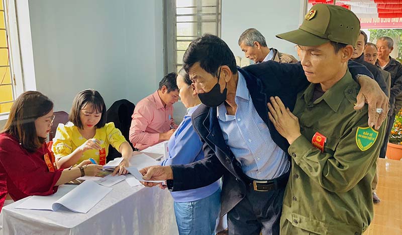 Cử tri lớn tuổi được các lực lượng hỗ trợ đi bỏ phiếu