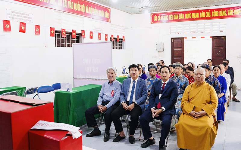 Lãnh đạo Sở Tài chính và phường Phú Bài dự khai mạc tại khu vực bỏ phiếu số 03, phường Phú Bài