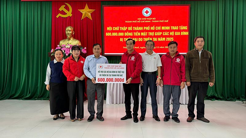 Trước đó, ngay sau khi mưa lũ xảy ra, Hội Chữ thập đỏ thành phố Hồ Chí Minh đã kịp thời vận động nhiều mạnh thường quân và các đoàn thiện nguyện tổ chức quyên góp, hỗ trợ khẩn cấp các nhu yếu phẩm thiết yếu, nhanh chóng vận chuyển ra Huế để cứu trợ người dân vùng bị ảnh hưởng. Sự vào cuộc khẩn trương, trách nhiệm và đầy nghĩa tình của Hội Chữ thập đỏ thành phố Hồ Chí Minh tiếp tục khẳng định tinh thần đoàn kết, sẻ chia sâu sắc giữa các địa phương; đồng thời thể hiện rõ vai trò nòng cốt, cầu nối của tổ chức Hội Chữ thập đỏ trong công tác nhân đạo và an sinh xã hội.