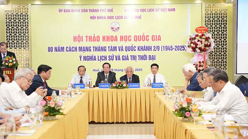 Ngày 28/8, UBND thành phố Huế phối hợp với Hội Khoa học Lịch sử Việt Nam và Hội Khoa học Lịch sử thành phố Huế tổ chức Hội thảo khoa học quốc gia với chủ đề “80 năm Cách mạng Tháng Tám và Quốc khánh 2/9 (1945 - 2025) - Ý nghĩa lịch sử và giá trị thời đại”. Tham dự Hội thảo có nhà thơ Nguyễn Khoa Điềm, nguyên Ủy viên Bộ Chính trị, nguyên Bí thư Trung ương Đảng, nguyên Trưởng ban Tư tưởng - Văn hóa Trung ương; UVTV Thành ủy, Phó Chủ tịch UBND thành phố Nguyễn Chí Tài; PGS.TS Trần Đức Cường, Chủ tịch Hội Khoa học Lịch sử Việt Nam.