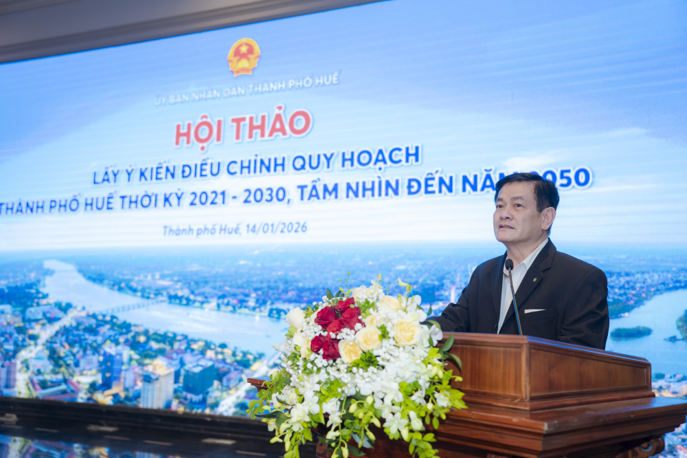 Phát biểu khai mạc hội thảo, Chủ tịch UBND TP. Huế Nguyễn Khắc Toàn nhấn mạnh: Huế vừa là trung tâm văn hóa, giáo dục, y tế, du lịch lớn của miền Trung, vừa là đầu mối giao thông quan trọng, cửa ngõ ra biển của Hành lang kinh tế Đông – Tây, gắn kết chặt chẽ với vùng Bắc Trung Bộ và cả nước. Do đó, việc điều chỉnh Quy hoạch thành phố Huế không chỉ là yêu cầu về mặt kỹ thuật, mà trước hết là nhiệm vụ mang ý nghĩa chiến lược, nhằm định hình lại mô hình tổ chức không gian phát triển, khai thác tốt hơn tiềm năng, lợi thế và tạo động lực lan tỏa cho cả vùng.