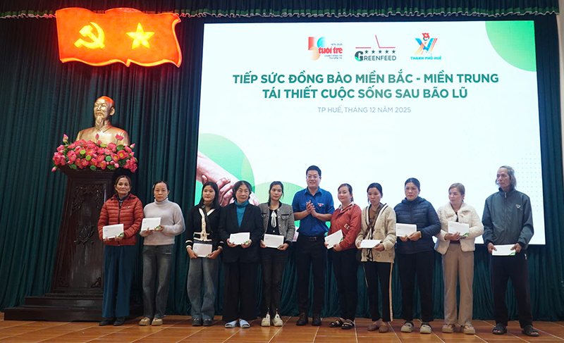 Chia sẻ với bà con vùng lũ phường Phong Điền, chương trình đã trao tặng 50 suất quà hỗ trợ cho 50 hộ dân bị thiệt hại nặng do mưa lũ với tổng kinh phí 900 triệu đồng (18 triệu đồng/suất). Đây là nguồn động viên thiết thực, kịp thời, giúp bà con có thêm điều kiện ổn định đời sống, khôi phục sản xuất và từng bước tái thiết sau thiên tai.