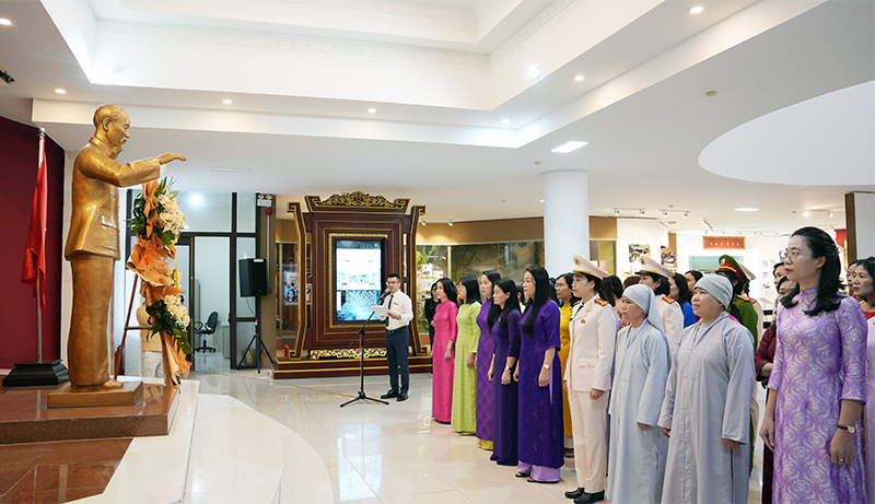 Trong khuôn khổ các hoạt động Đại hội Đại biểu phụ nữ lần thứ XVII, nhiệm kỳ 2025-2030, sáng 23/12, Đoàn đại biểu tham dự Đại hội do đồng chí Trần Thị Kim Loan, TUV, Chủ tịch Hội LHPN thành phố Huế làm trưởng đoàn dâng hoa báo công tại Bảo tàng Hồ Chí Minh và dâng hương dâng hoa tại Bia ghi danh 11 cô gái sông Hương (ảnh dưới).