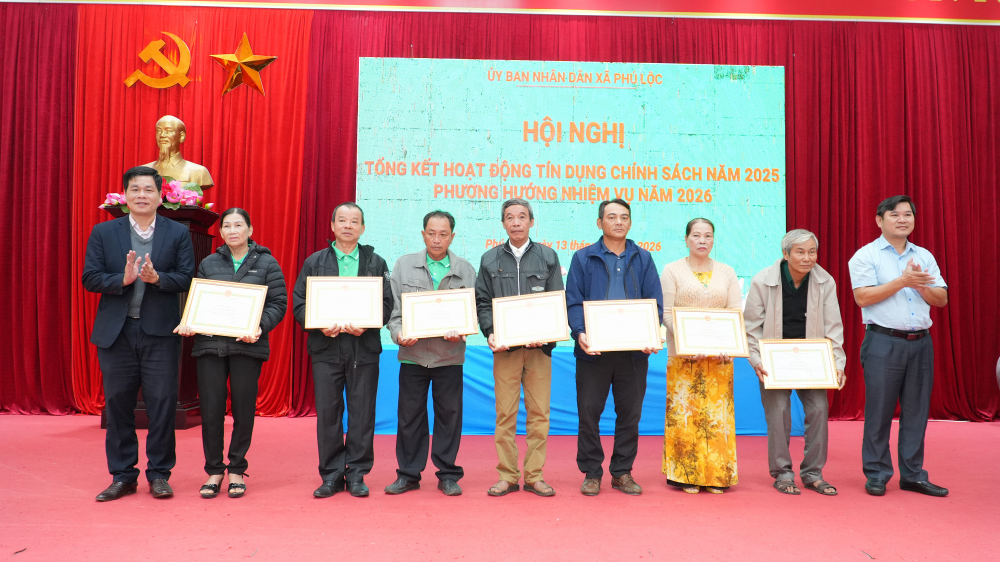 Tại hội nghị đã trao giấy khen của Chủ tịch UBND xã Phú Lộc cho 7 cá nhân có thành tích xuất sắc trong việc triển khai thực hiện công tác quản lý vốn vay ủy thác Ngân hàng Chính sách xã hội năm 2025; đồng thời tổ chức ký kết quy chế phối hợp giữa Ngân hàng Chính sách xã hội và các hội, đoàn thể.