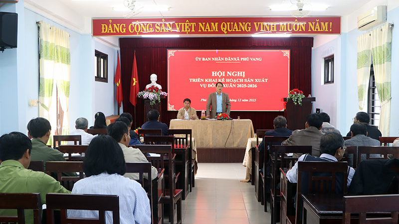 Ngày 12/12, Ủy ban nhân dân xã Phú Vang tổ chức Hội nghị triển khai kế hoạch sản xuất nông nghiệp vụ Đông Xuân 2025-2026. Đồng chí La Đình Tân – UVTV Đảng uỷ, Phó Chủ tịch UBND xã chủ trì hội nghị.