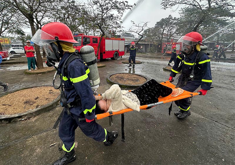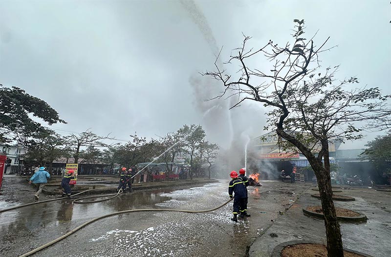 Thực tập phương án chữa cháy và cứu nạn, cứu hộ tại chợ Cầu Hai, xã Phú Lộc