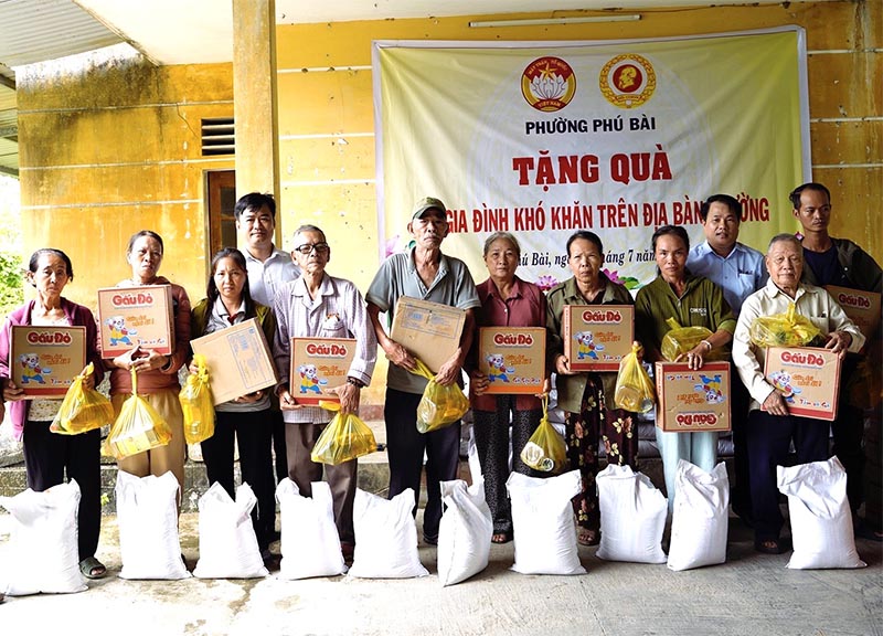 Thông qua kết nối của Ủy ban MTTQ Việt Nam phường Phú Bài, dịp này, các đơn vị đã trao 300 suất quà, mỗi suất trị giá gần 400 nghìn đồng (gồm: gạo, mì tôm, dầu ăn và các nhu yếu phẩm thiết yếu) đến các hộ nghèo, cận nghèo, hộ có hoàn cảnh khó khăn tại địa bàn 2 xã vùng gò đồi Phú Sơn và Dương Hòa (cũ). Những phần quà tuy giá trị vật chất không lớn nhưng chứa đựng nghĩa tình từ các nhà hảo tâm, giúp bà con vơi bớt khó khăn, có thêm niềm tin và động lực để vươn lên trong cuộc sống.