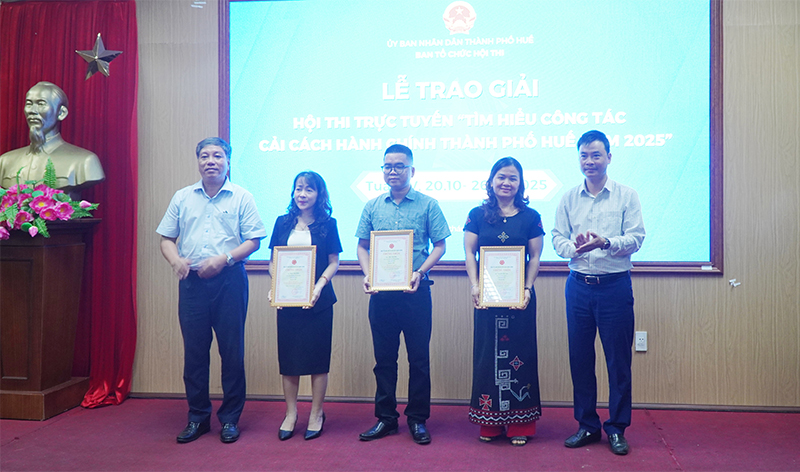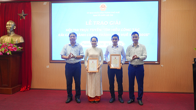 Ngày 12/11, Ban Tổ chức Hội thi trực tuyến tìm hiểu công tác cải cách hành chính (CCHC) thành phố Huế năm 2025 tổ chức lễ trao giải cho các cá nhân đạt thành tích xuất sắc trong đợt thi tuần thứ tư (tuần 4, từ ngày 20-26/10/2025).