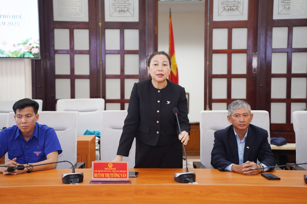 Phó Chủ tịch Ủy ban MTTQ Việt Nam thành phố Huế Phạm Thị Ái Nhi trân trọng cảm ơn sự quan tâm, hỗ trợ kịp thời, nghĩa tình của Vietnam Airlines đối với thành phố Huế; khẳng định đây không chỉ là nguồn động viên vật chất mà còn là sự cổ vũ tinh thần to lớn, thể hiện trách nhiệm xã hội và tinh thần sẻ chia của doanh nghiệp với cộng đồng.