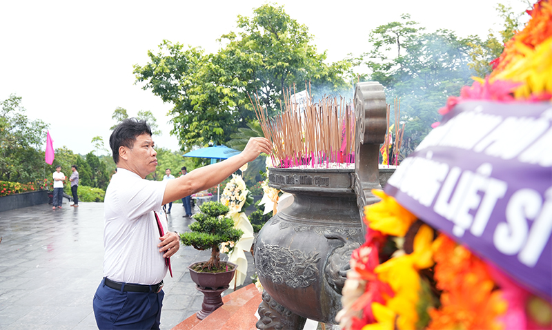 Sau lễ dâng hoa, dâng hương các anh hùng liệt sĩ, đồng chí Trưởng Ban Tổ chức Thành ủy cùng Đoàn đã đến thắp hương từng ngôi mộ, nơi an nghỉ của các anh hùng liệt sĩ để tưởng nhớ và tri ân.